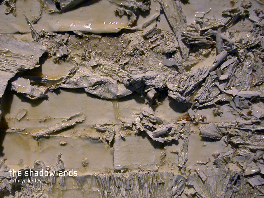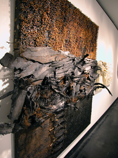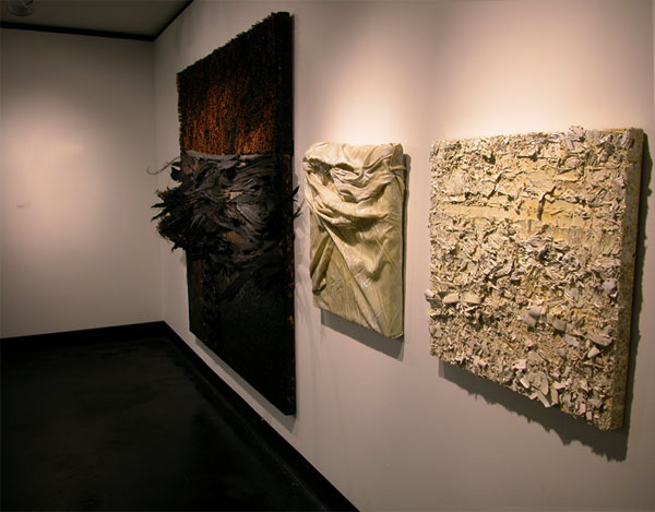 The Shadowlands (black painting 6 x 6 feet; white paintins 2 x 2 feet each; Tar, tires, nails, rope, satin, paint chips) Lawndale Art Center Juried Exhibition The Big Show July 2005 Interview with Alison Young of Front Row KUHF